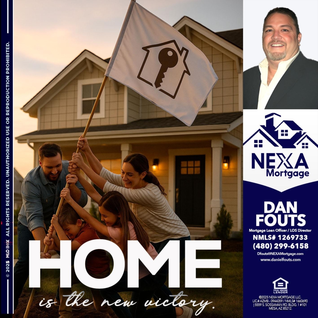 Hi, my name is Dan Fouts. I’m a Loan Officer with NEXA Mortgage LLC., offering personalized mortgage solutions, fast customized quotes, great rates and service with integrity.