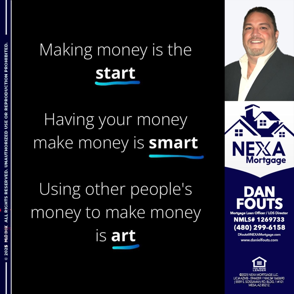 Hi, my name is Dan Fouts. I’m a Loan Officer with NEXA Mortgage LLC., offering personalized mortgage solutions, fast customized quotes, great rates and service with integrity.