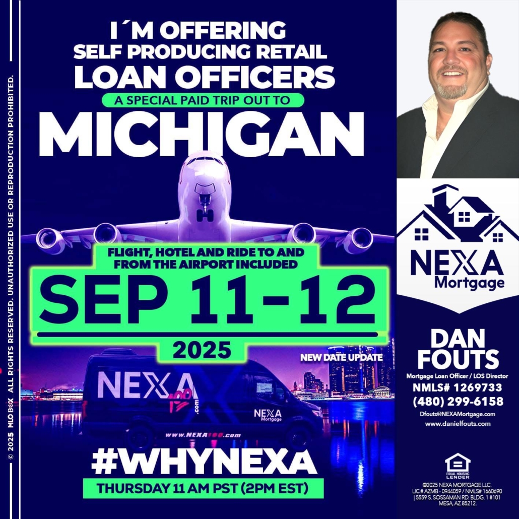 Hi, my name is Dan Fouts. I’m a Loan Officer with NEXA Mortgage LLC., offering personalized mortgage solutions, fast customized quotes, great rates and service with integrity.