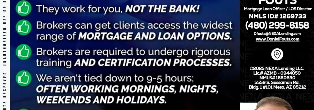 Hi, my name is Dan Fouts. I’m a Loan Officer with NEXA Lending LLC., offering personalized mortgage solutions, fast customized quotes, great rates and service with integrity.