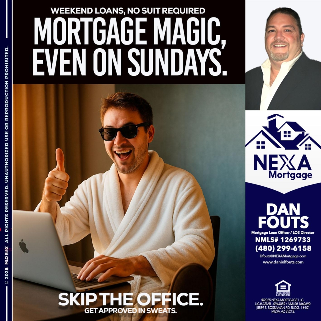 Hi, my name is Dan Fouts. I’m a Loan Officer with NEXA Mortgage LLC., offering personalized mortgage solutions, fast customized quotes, great rates and service with integrity.
