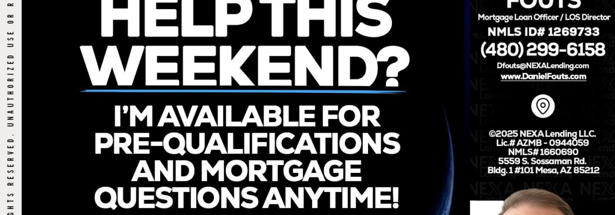 Hi, my name is Dan Fouts. I’m a Loan Officer with NEXA Lending LLC., offering personalized mortgage solutions, fast customized quotes, great rates and service with integrity.