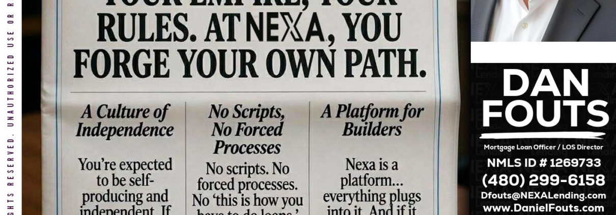 Hi, my name is Dan Fouts. I’m a Loan Officer with NEXA Lending LLC., offering personalized mortgage solutions, fast customized quotes, great rates and service with integrity.