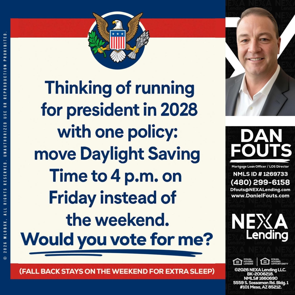 Hi, my name is Dan Fouts. I’m a Loan Officer with NEXA Lending LLC., offering personalized mortgage solutions, fast customized quotes, great rates and service with integrity.