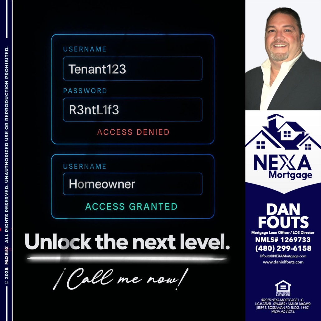 Hi, my name is Dan Fouts. I’m a Loan Officer with NEXA Mortgage LLC., offering personalized mortgage solutions, fast customized quotes, great rates and service with integrity.